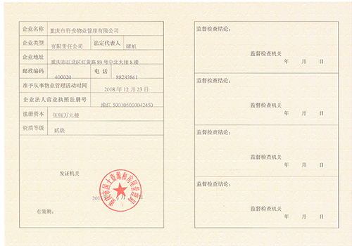 軒安物業(yè)資質正本