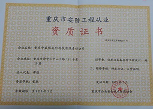 安防科技資質證書